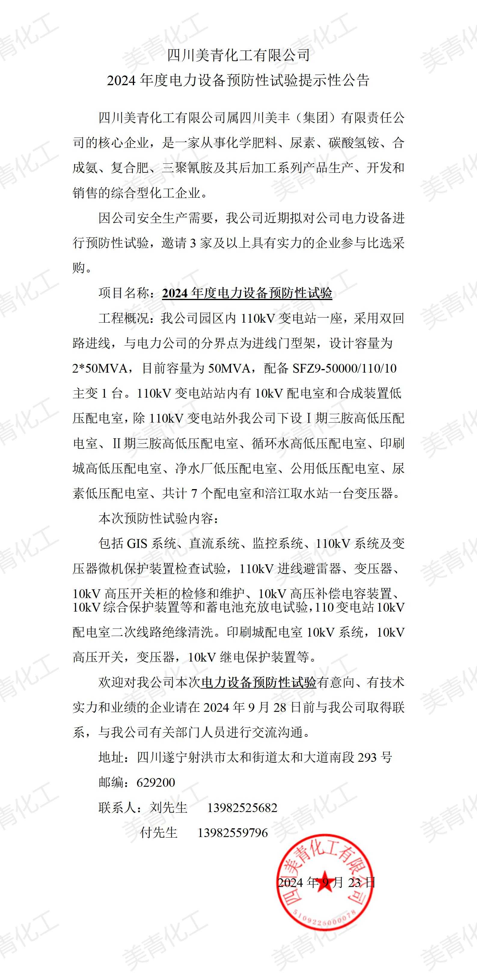 2024年度電力設(shè)備預(yù)防性試驗提示性公告